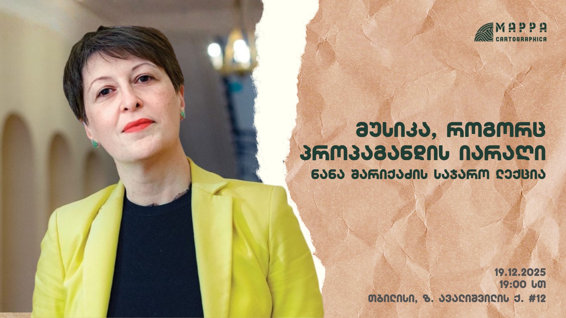 მაპპა კარტოგრაფიკა გიწვევთ ნანა შარიქაძის საჯარო ლექციაზე - "მუსიკა, როგორც პროპაგანდის იარაღი".