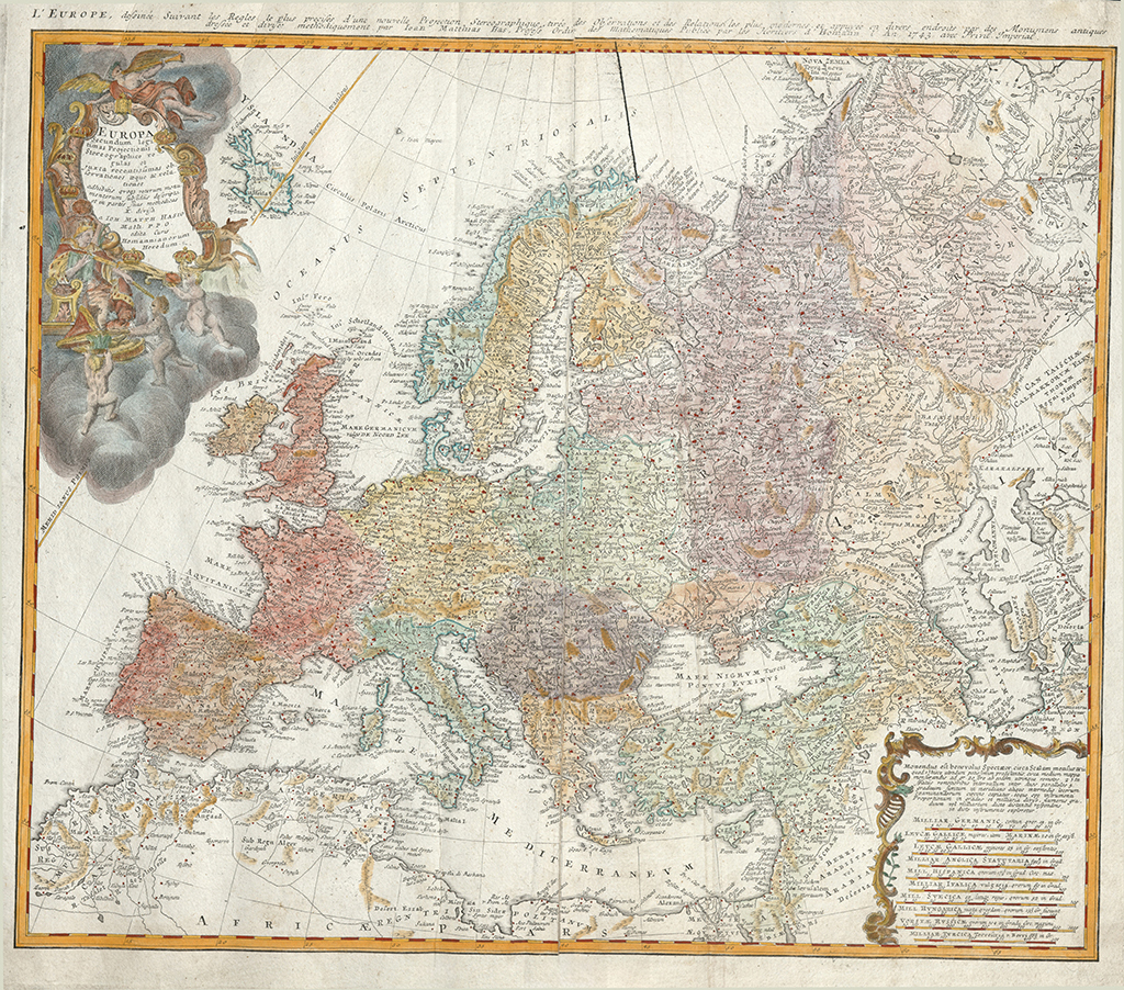 იოჰან მატიას ჰაასის ევროპის შესანიშნავი რუკა, რომელიც ჰომან ჰეირის გამომცემლობის მიერ არის დაბეჭდილი.