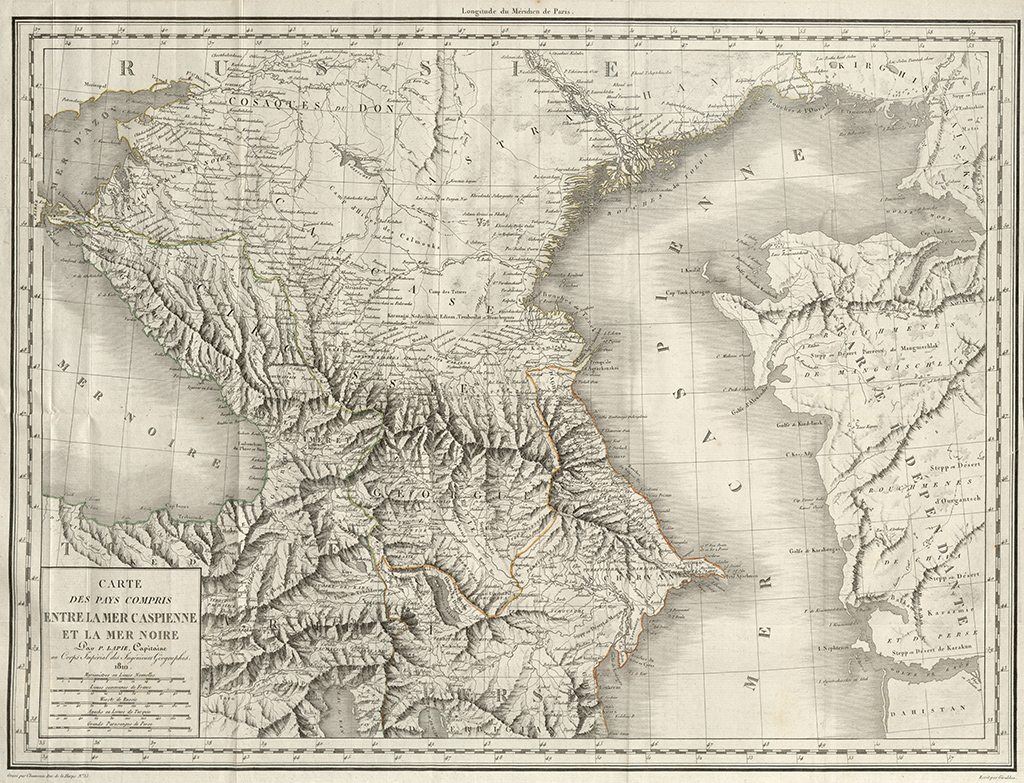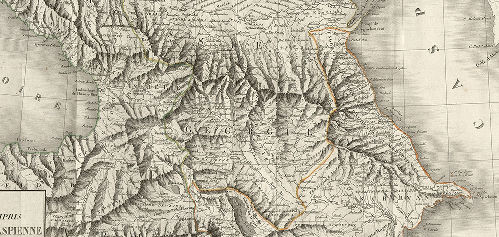 XIX საუკუნის დასაწყისის ერთ-ერთი პირველი რუკა, რომელზეც წარმოდგენილია შავ და კასპიის ზღვებს შორის მოქცეული ქვეყნები.