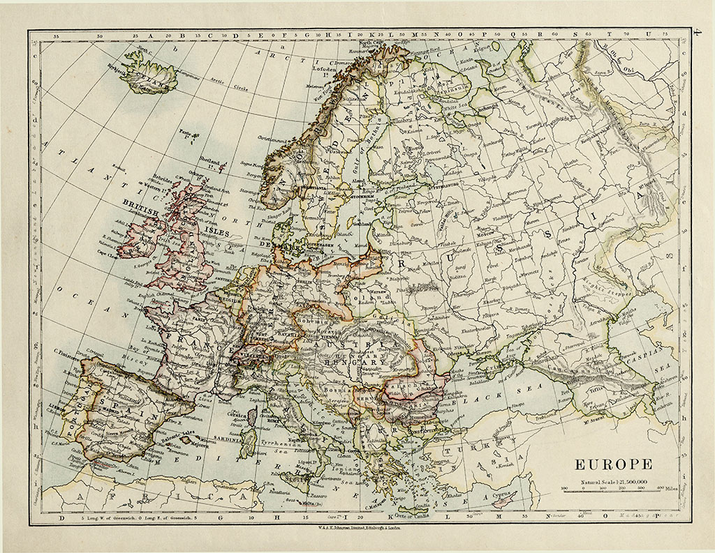 რუკის უკანა მხარეს წარმოდგენილია ევროპის რუკა.