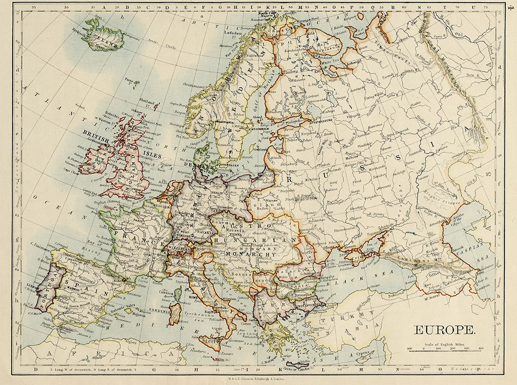 რუკის უკანა მხარეს წარმოდგენილია ევროპის რუკა.